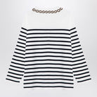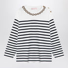 This Valentino jersey top features classic stripes and elegant embroidery.