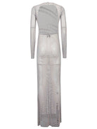Make a statement with this elegant long silver dress, perfect for special occasions.