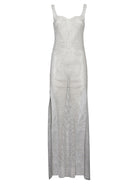 Make a statement in this elegant long silver dress, perfect for special occasions.