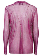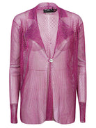 This fuchsia jacket features a button closure and long sleeves for a stylish look.