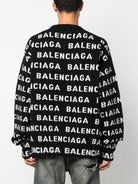 Stay warm and stylish in this Balenciaga intarsia-knit logo sweater.