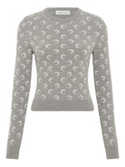 Stay stylish and cozy in this jacquard knit sweater featuring a unique crescent moon pattern.