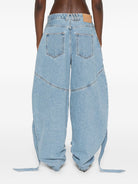 These wide-leg jeans offer a stylish and comfortable fit for everyday wear.