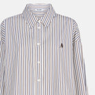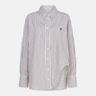 This striped cotton shirt offers a blend of classic style and subtle branding.