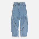 These wide leg jeans offer a stylish and comfortable fit with unique ribbon detailing.