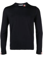 This fine-knit jumper offers a classic look with signature Thom Browne detailing.