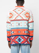 Elevate your style with this vibrant jacquard cardigan, perfect for adding a pop of colour to any outfit.