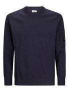 Stay warm and stylish in this classic cotton sweater with signature lens detail.