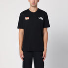 Black cotton T-shirt from The North Face, featuring short sleeves, contrasting front and back prints, logo patch on chest and ribbed crew neck. Size and Fit - Model wears size L Model measurements: Height: 185 cm Chest: 100 cm Waist: 83 cm Hips: 92 cm