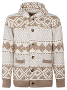 This beige cardigan features a Navajo-inspired design for a unique, stylish look.