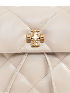This quilted backpack features gold-tone hardware and adjustable chain straps.