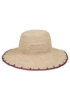 This hand-finished straw hat features contrasting decorations and a unique paisley pattern.