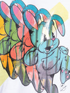 This tee features a playful bunny graphic for a touch of whimsy.