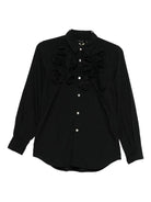 This stylish shirt features delicate floral appliqués for a touch of elegance.