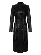 This stylish coat features a crocodile effect and belted waist for a flattering silhouette.