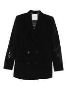 This double-breasted jacket features eye-catching sequin embellishments for a touch of glamour.
