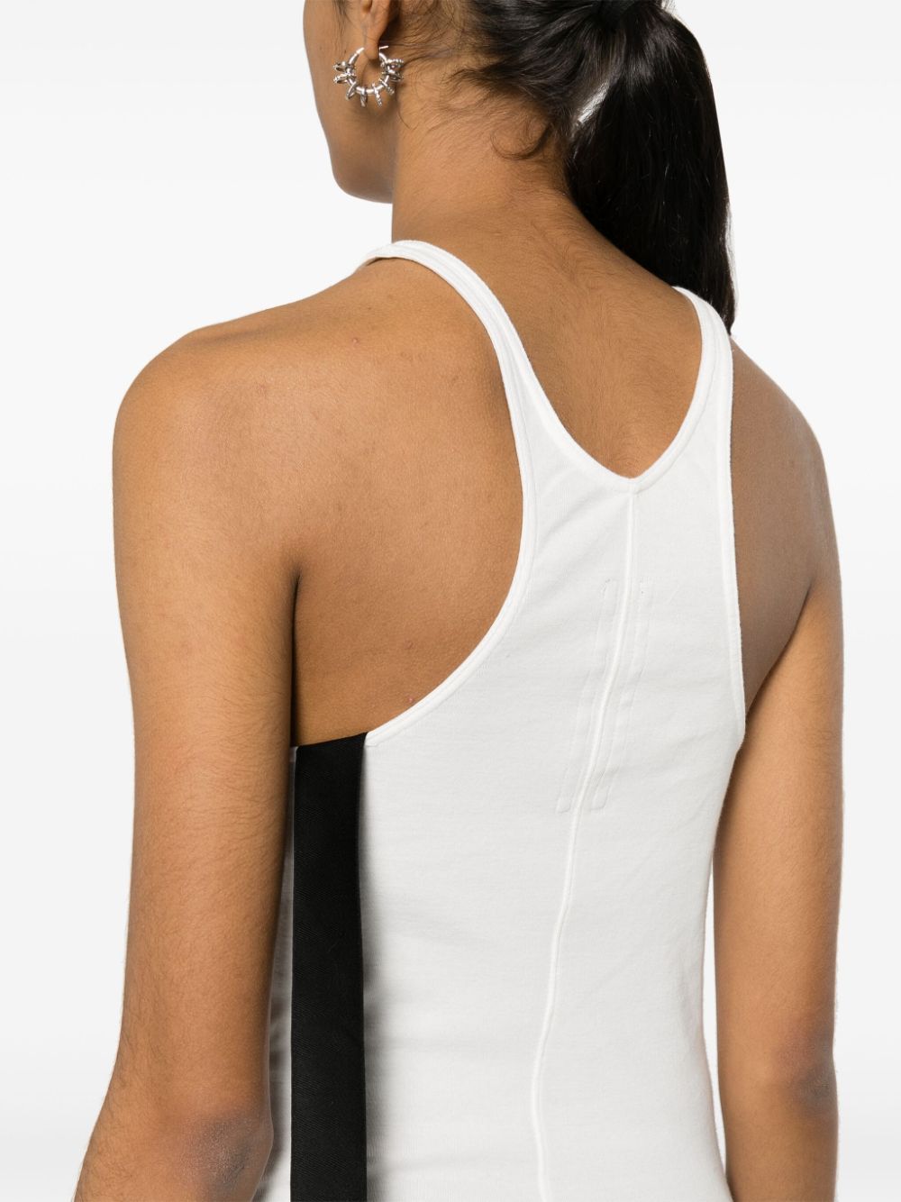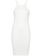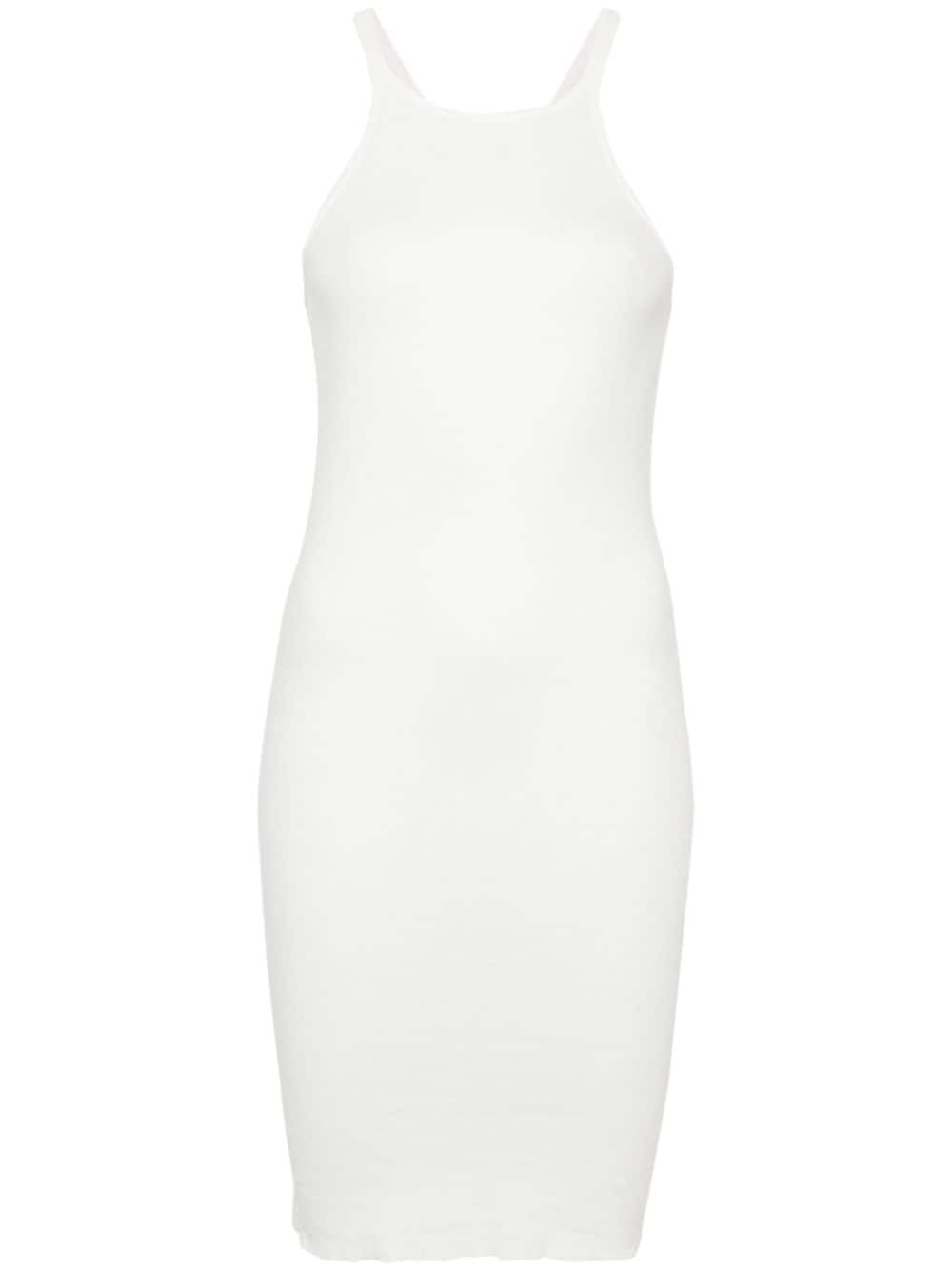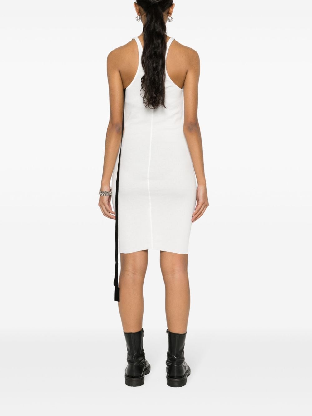 This organic cotton dress features a racerback and raw-cut hem for edgy style.