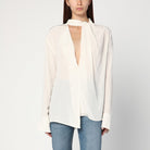 Victoria Beckham Ivory Silk Draped Blouse