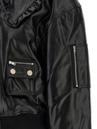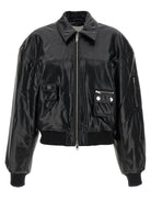 Elevate your outerwear with this shiny, leather-effect bomber jacket.