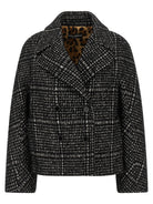 This houndstooth coat features a luxurious blend of virgin wool, mohair, alpaca, and silk for ultimate comfort.