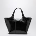 This mini shopper bag is crafted in Italy from luxurious black leather.