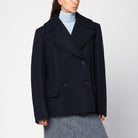 This wool-blend coat offers a sophisticated and comfortable fit.