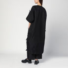 Elegant black coat with subtle floral embroidery adds sophistication to any outfit.