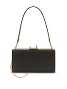 This elegant clutch is crafted from luxurious black calf leather with gold-tone hardware.