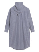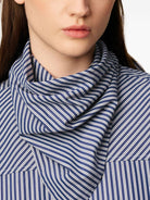 This royal blue dress features a striped pattern and bandana collar for a chic look.