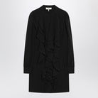 Elegant black dress with delicate ruffles, perfect for sophisticated style.