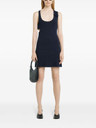 This navy dress features a racerback and cut-out detailing for a stylish look.