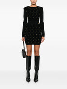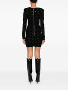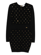 This chic black dress features elegant gold embellishments for a touch of glamour.