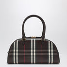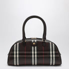 This Burberry bowling bag features a signature check pattern and refined leather accents.