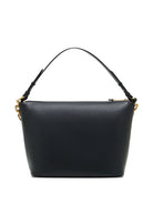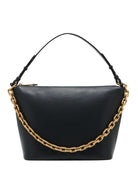 This sleek handbag is crafted from premium leather with elegant gold-tone accents.