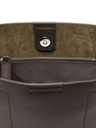 This stylish leather handbag features a unique H-shaped detail.