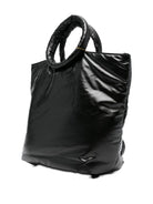 This stylish handbag features a unique padded design and elegant gold-tone accents.