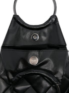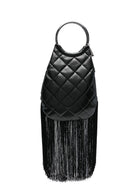 This stylish handbag features a unique quilted texture and playful fringe detail.