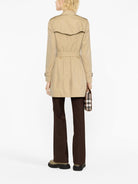 A timeless design, this Burberry trench coat offers classic style and versatile coverage.