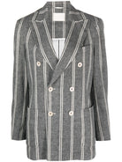 This double-breasted blazer features a stylish striped pattern for a sophisticated look.