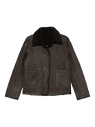 Stay warm and stylish in this classic shearling jacket, perfect for cooler weather.