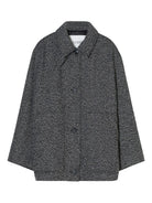 This wool short coat features a timeless herringbone pattern for elevated style.