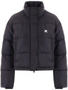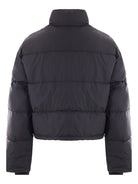 Stay warm and stylish in this silk and nylon blend puffer jacket.