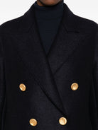 This navy jacket features gold buttons for a touch of elegance.