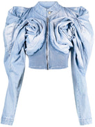 Elevate your style with this unique draped denim jacket, perfect for making a statement.