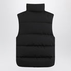 Padded vest by Moncler Genius X EE72 by Edward Enninful in black nylon and cotton blend, featuring front closure with double zip, high collar, two flap pockets with snap button at the front, and logo patch on the chest. Size and Fit - Model wears size 1 Model measurements: Height: 178 cm Chest: 83 cm Waist: 63 cm Hips: 91 cm