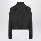 Jacket by Moncler Genius X EE72 by Edward Enninful in black, featuring hidden front closure with two visible snap buttons, high collar, two side pockets, snap-button cuffs, and long sleeves with one logo patch. Size and Fit - Model wears size 1 Model measurements: Height: 178 cm Chest: 83 cm Waist: 63 cm Hips: 91 cm