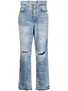 These straight-leg jeans offer a stylishly distressed look with a comfortable fit.