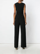 This sleek jumpsuit features a flattering ruched design for a chic, streamlined look.