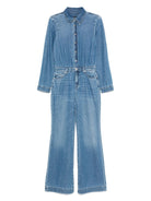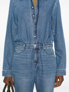 This denim jumpsuit offers a stylish and comfortable all-in-one outfit solution.