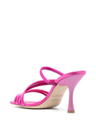 Elevate your style with these raspberry pink, high-heeled sandals.